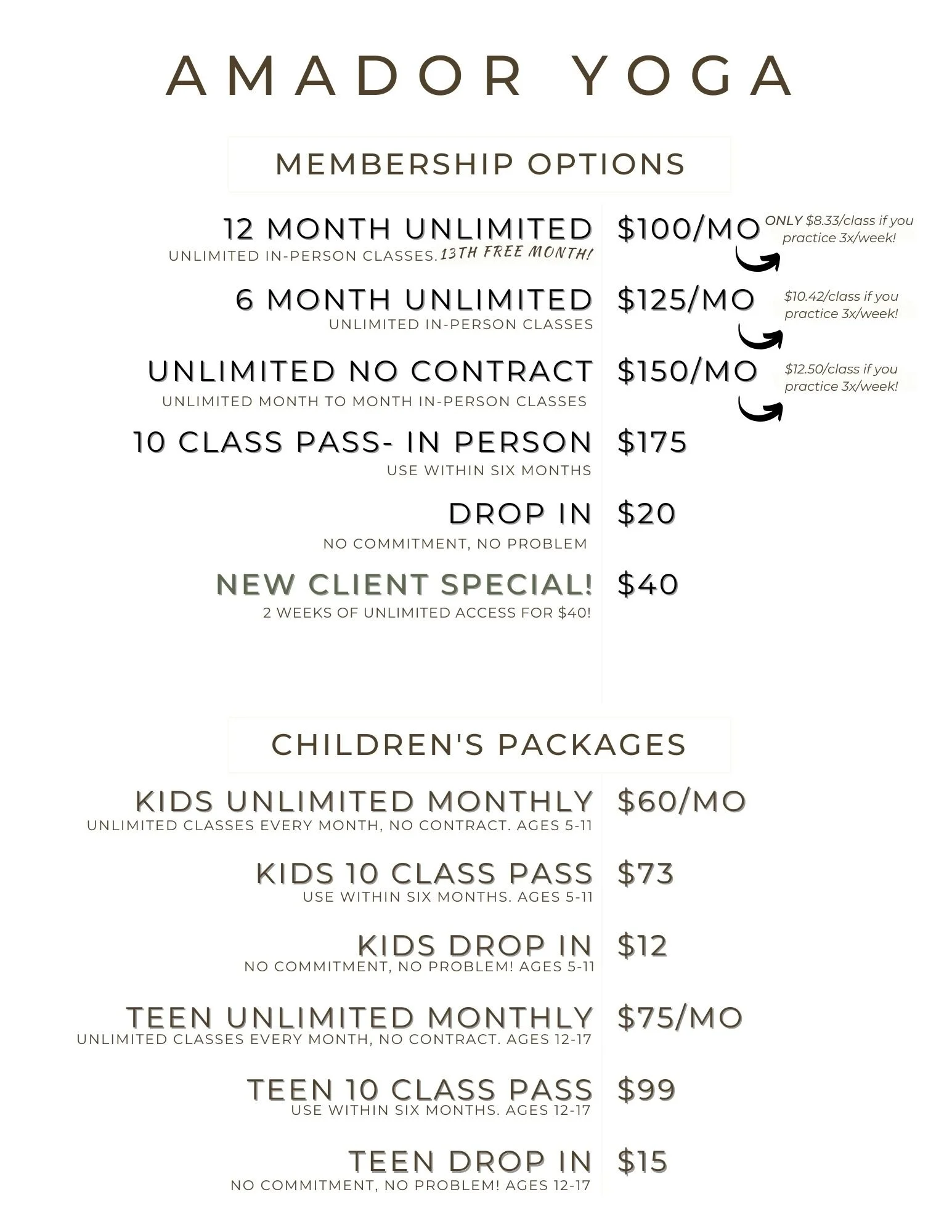 *Contact us to inquire about special discounts for seniors, students, military, first responders, teachers, Sutter Amador employees, & Jackson Rancheria employees!